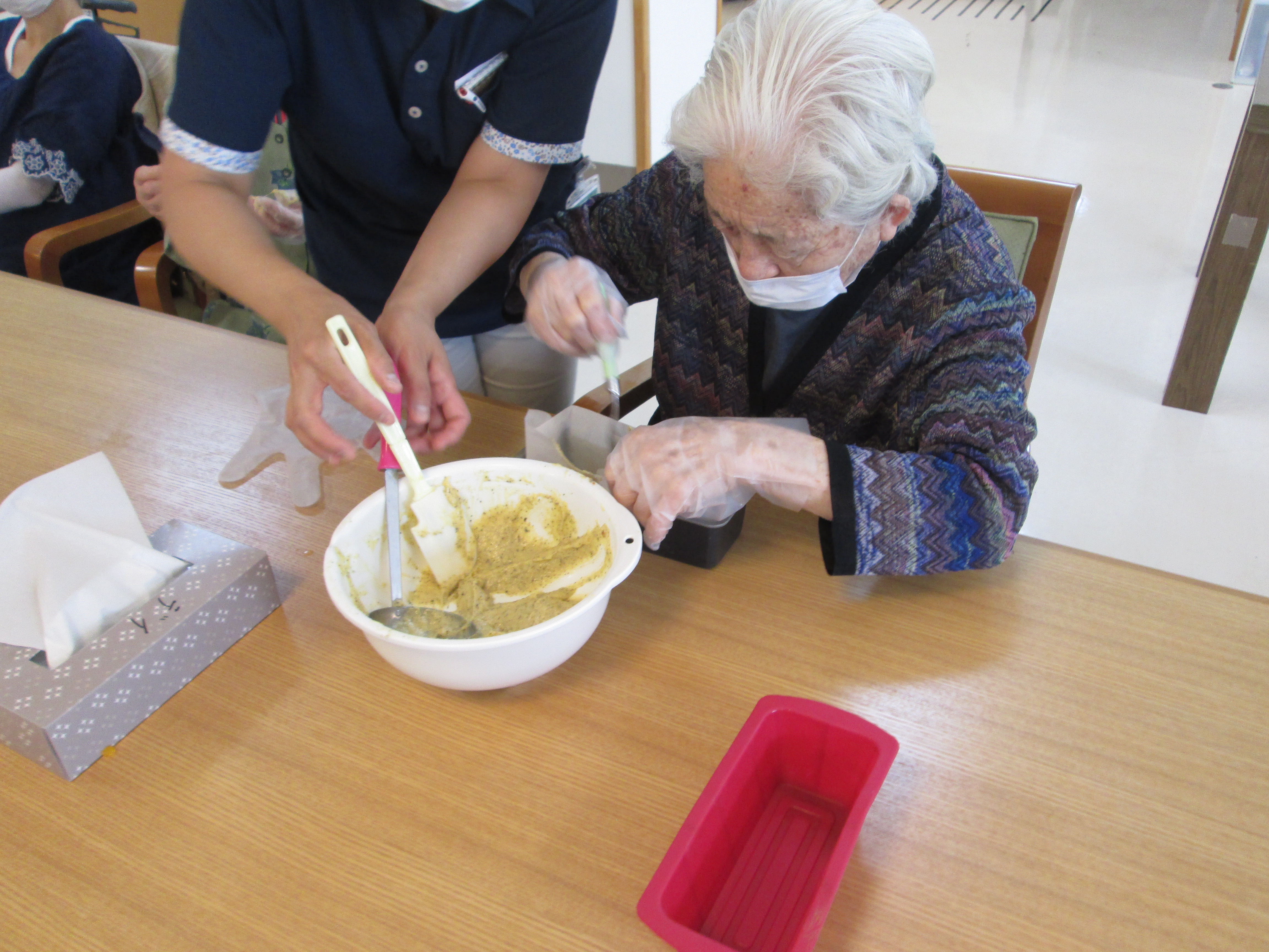 ホットケーキミックスや牛乳、卵を材料にパウンドケーキを焼きました。