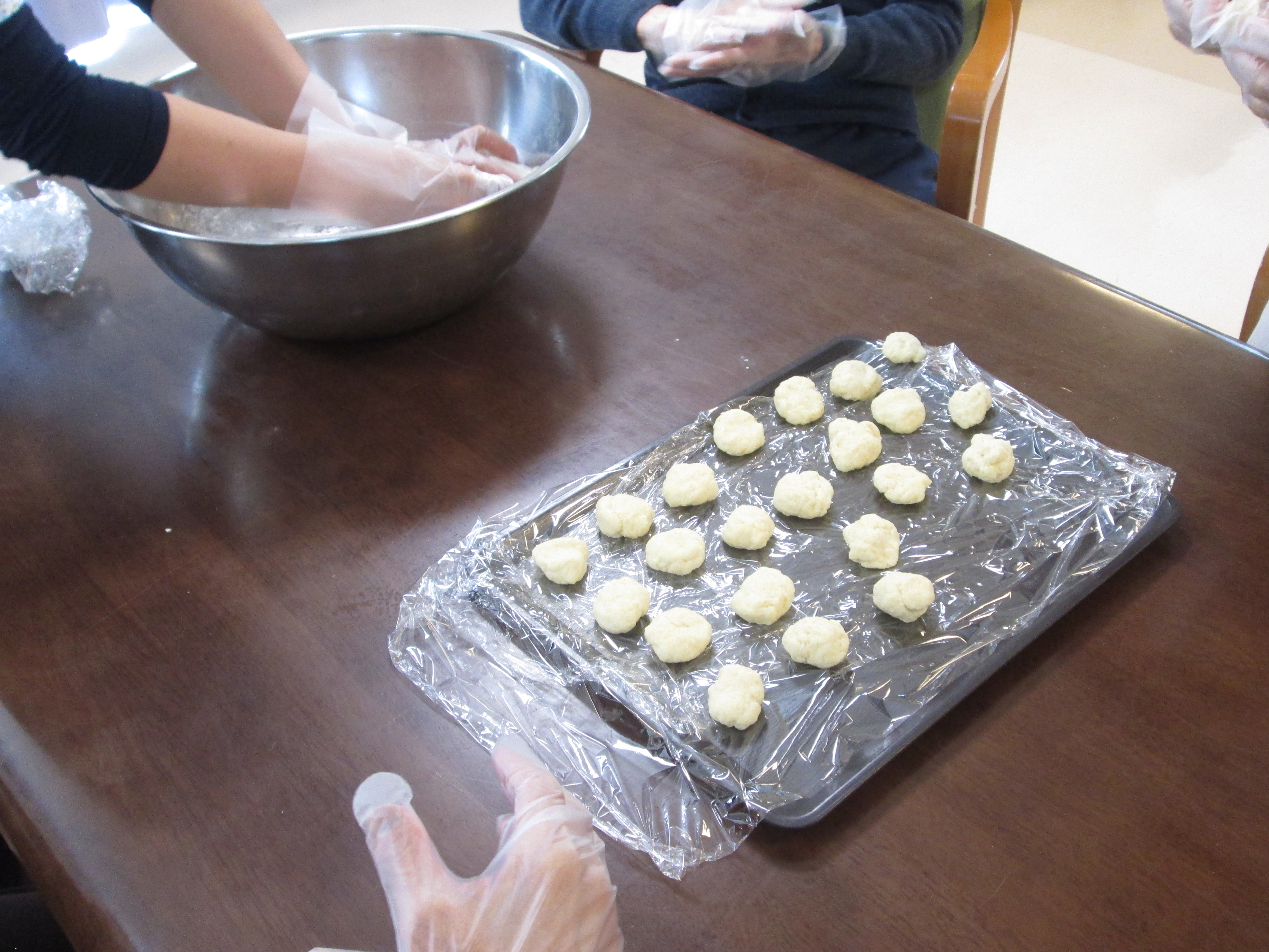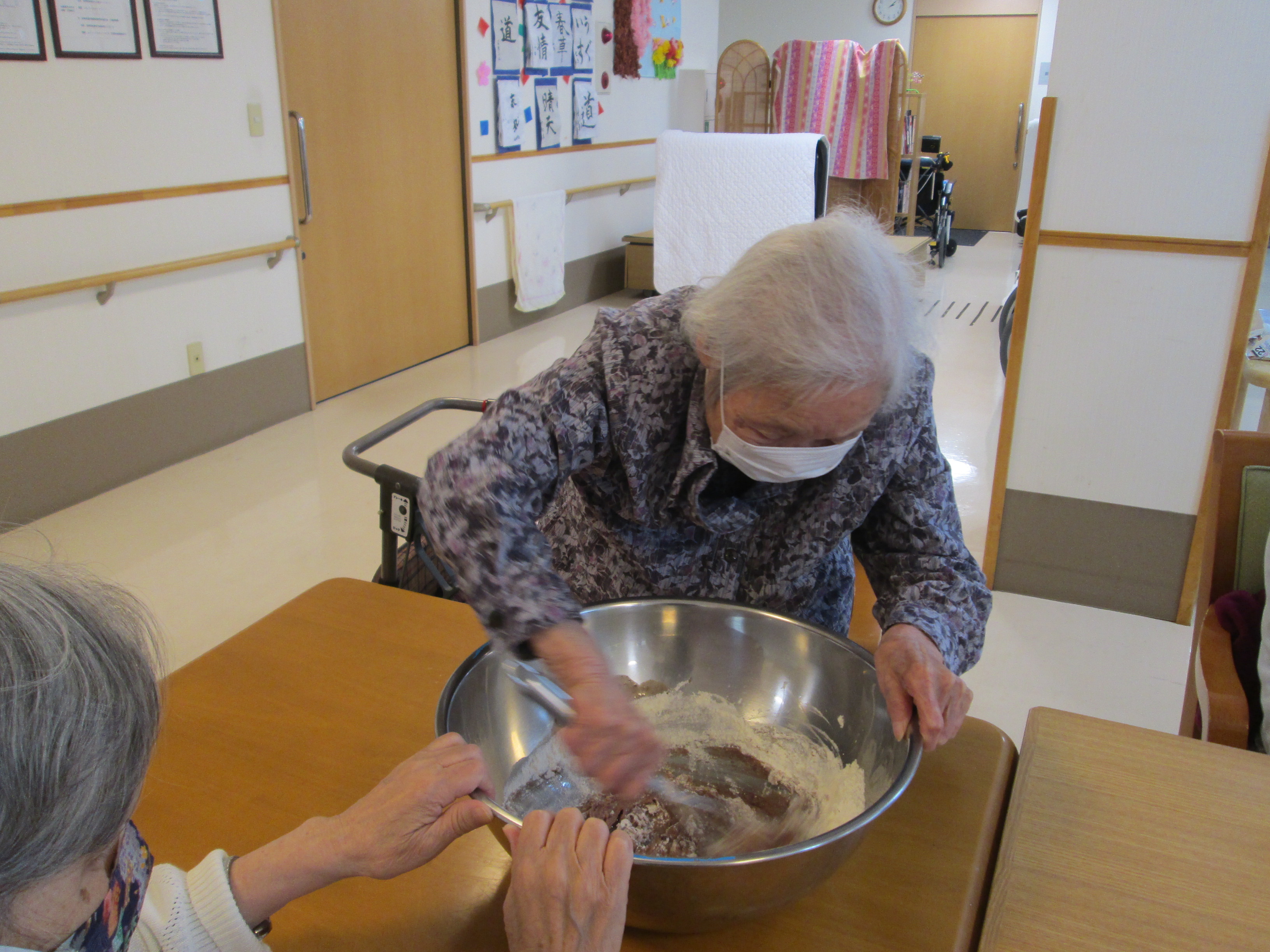 利用者様と一緒に、おからドーナツを作りました。