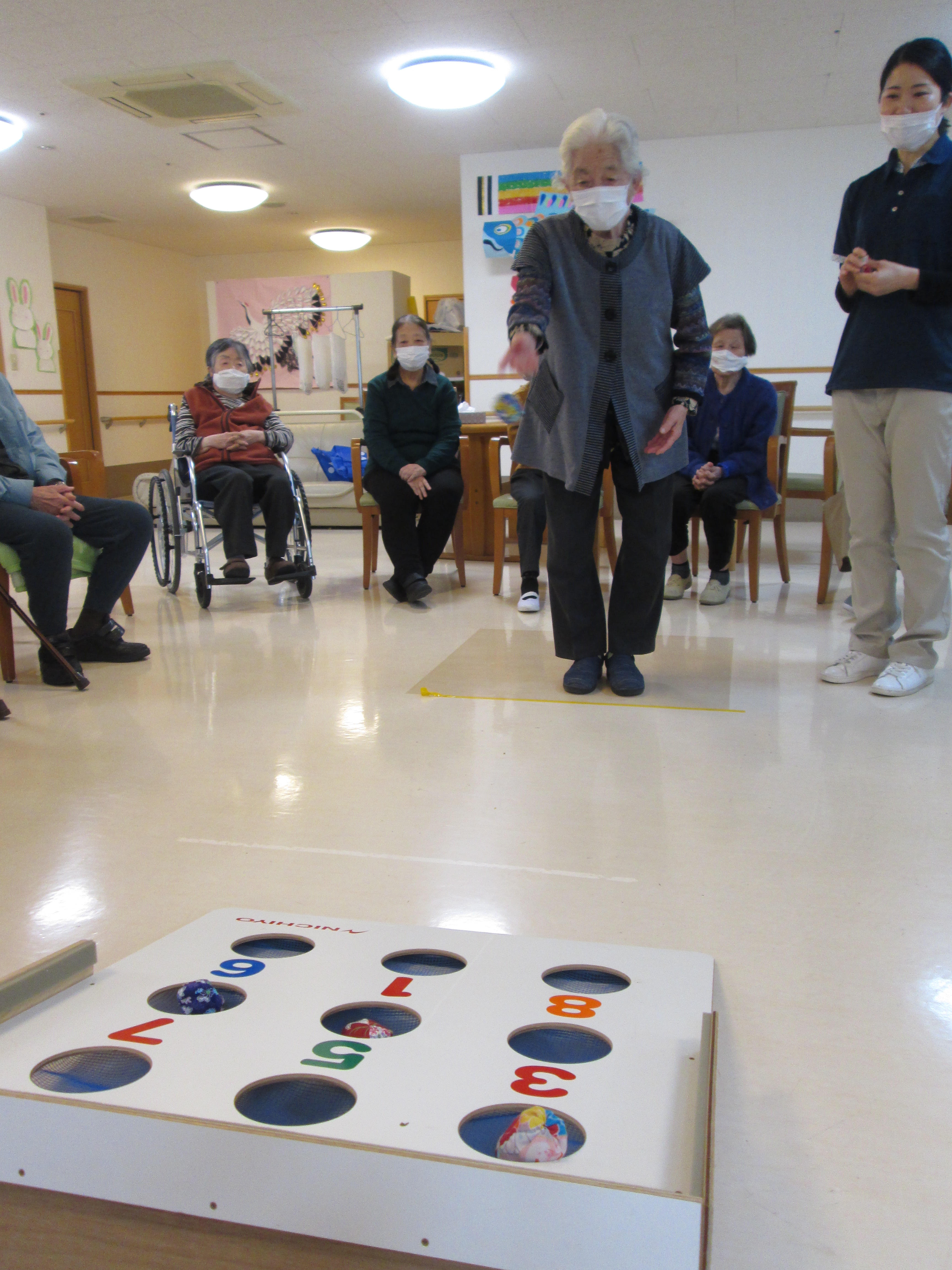 今日は、ボールを投げて点数を競うゲームでとても盛り上がりました。