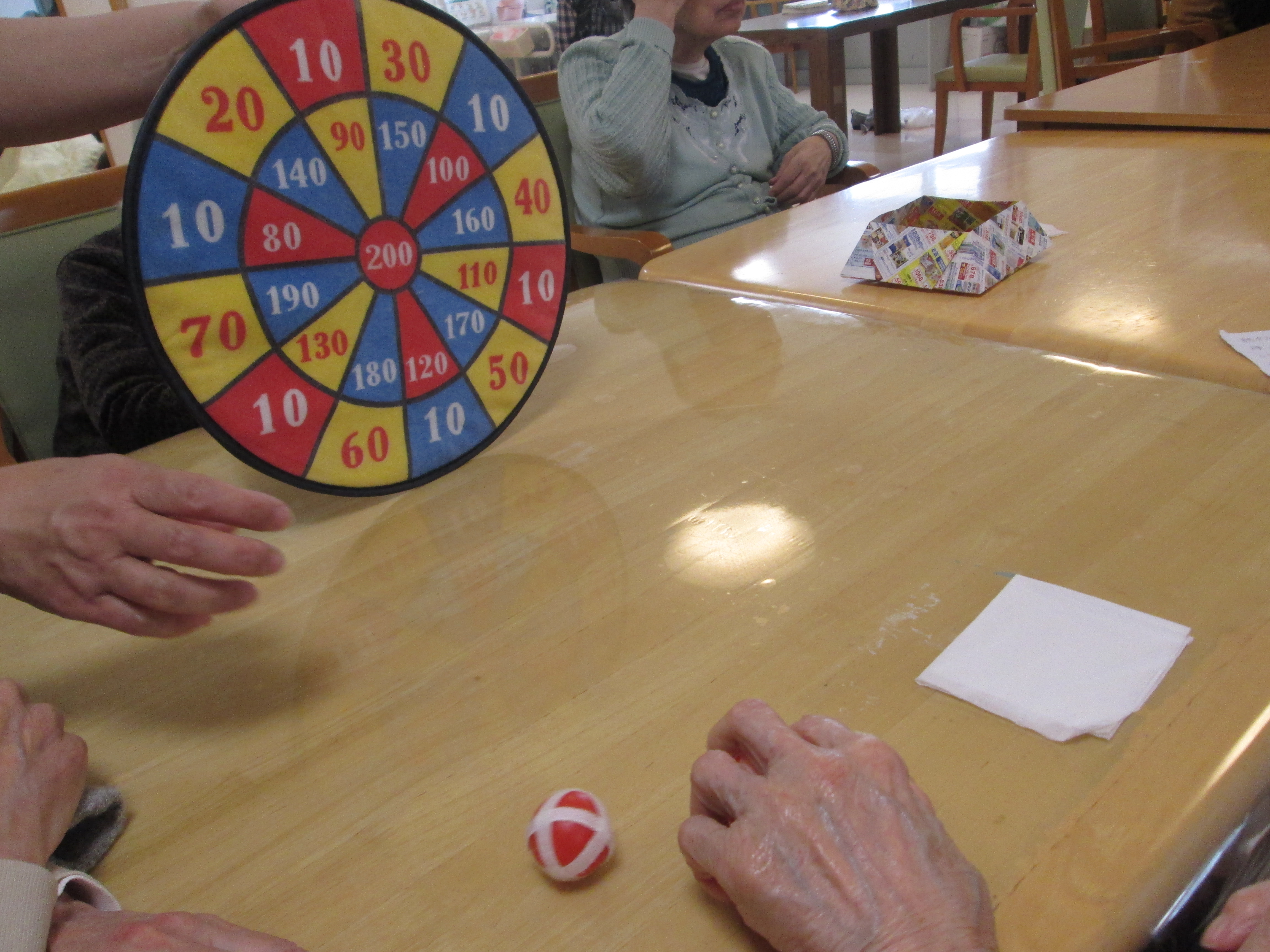 今日のレクリエーションは、唱歌カルタと的あてゲームを行いました!
