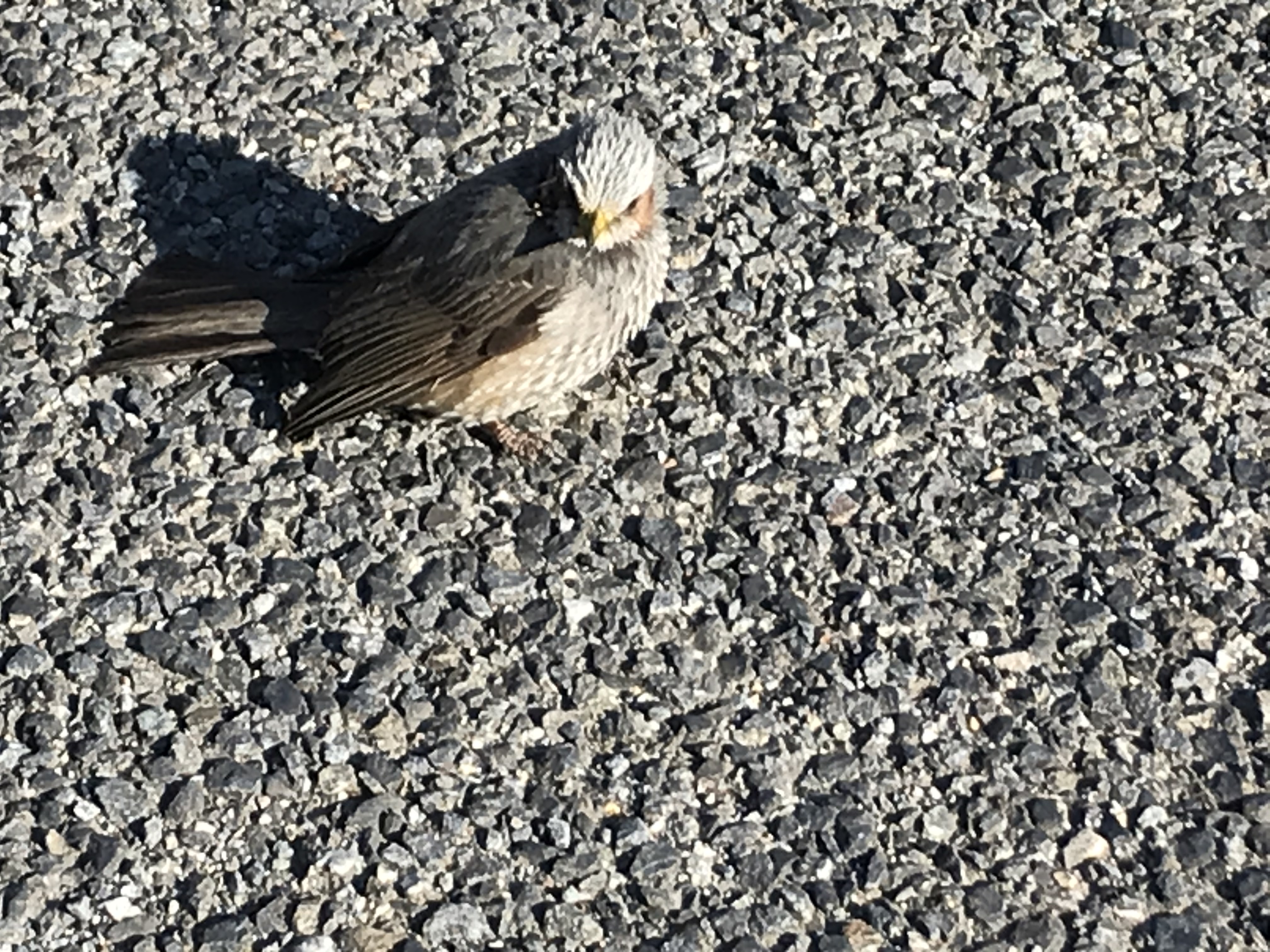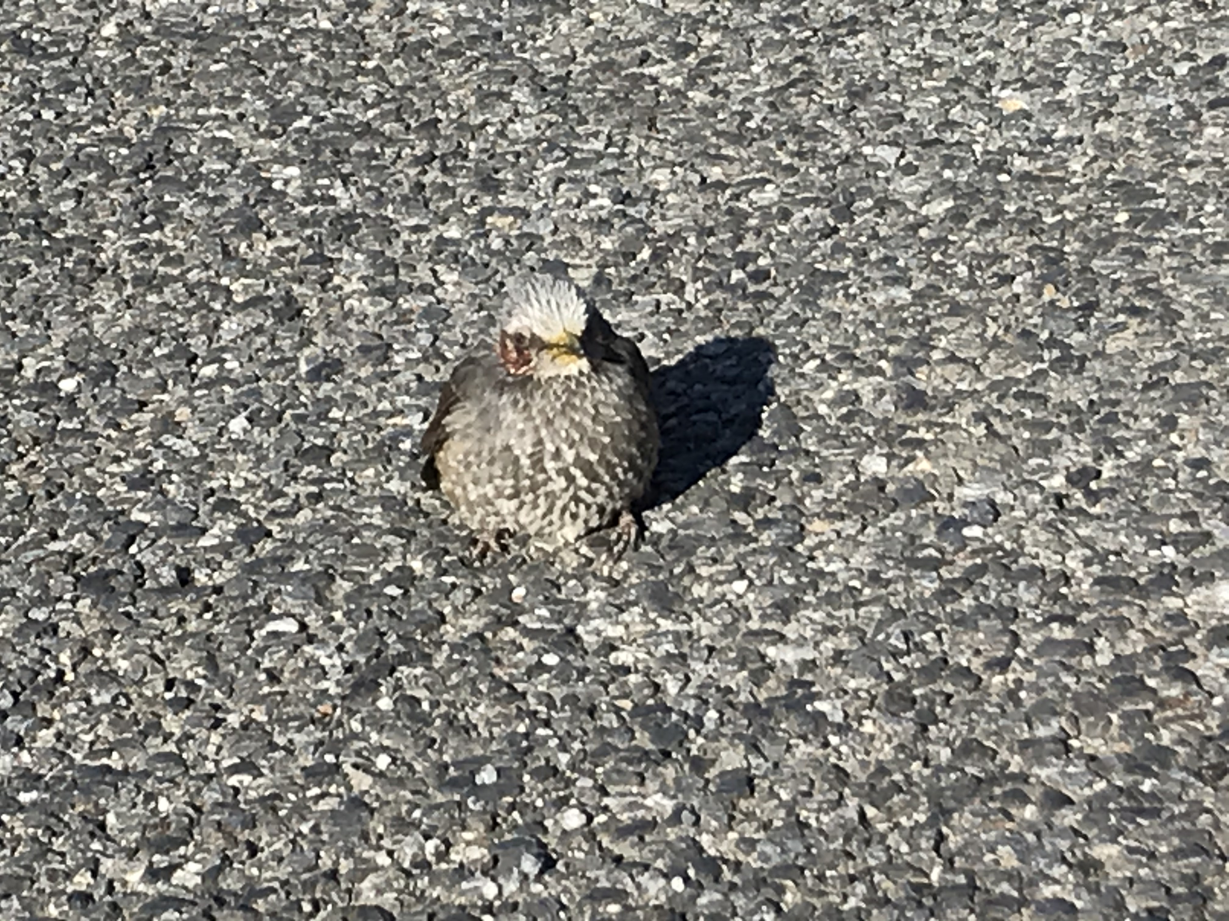 今朝出勤すると、駐車場の真ん中の陽当たりの良い場所に一羽の鳥が羽を休めていました。