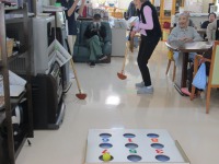 ゲートボール風の遊びで、得点が書いてある穴にボールを入れて得点を競っていました。