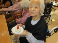 デイサービス本日の料理教室では、「いちご大福」を作りました。