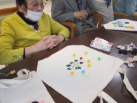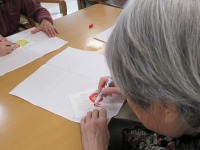 デイサービスの利用者様が、ひな祭りに向けてひな人形を制作しています。