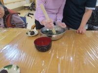 デイサービスの料理教室では今日、「草もち」を作りました。