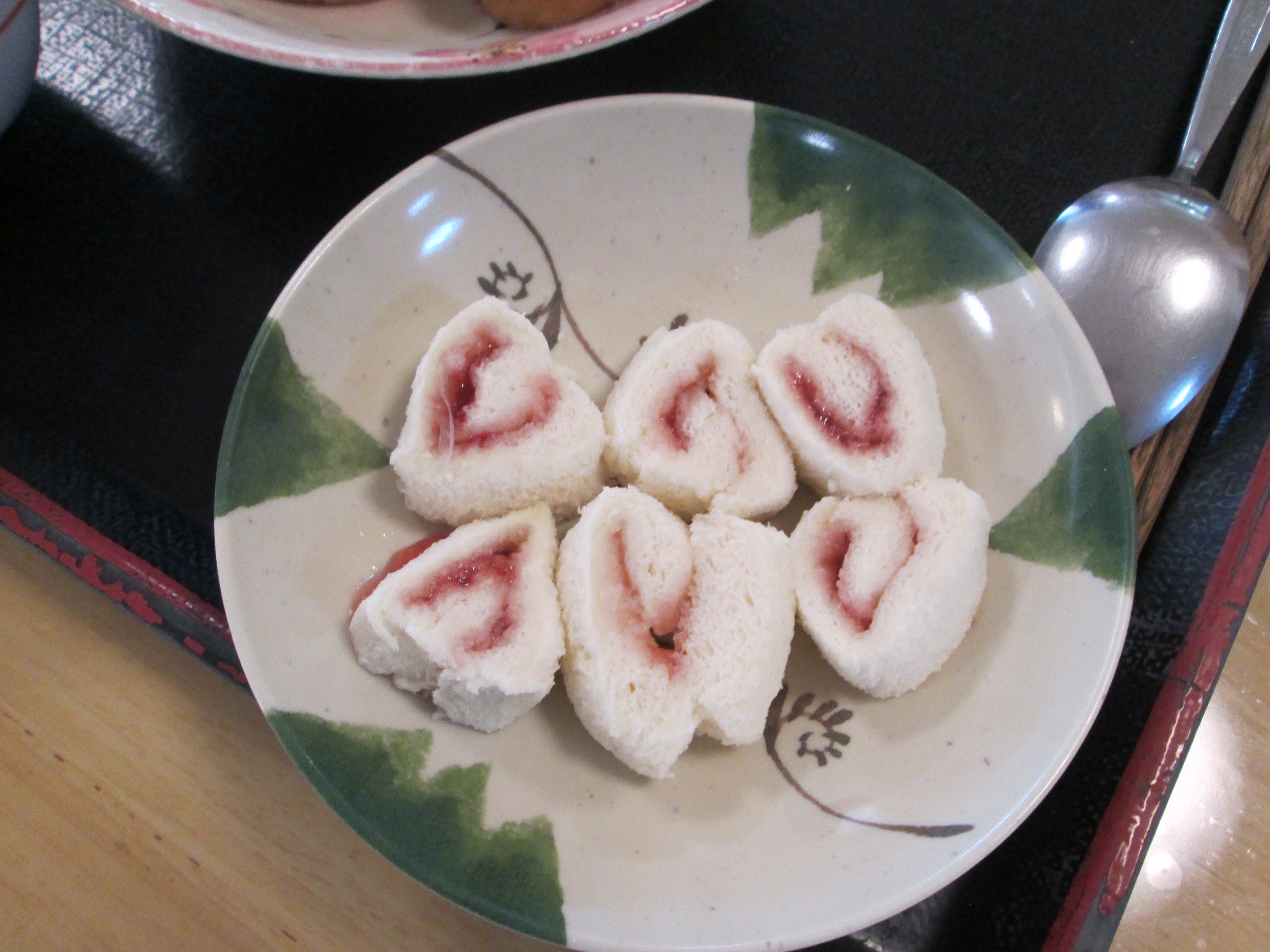 厨房の調理員が食パンにジャムを挟み、ハート型に飾ってくれました。