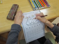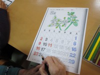 デイサービスでは、2月のカレンダー作りの為、皆さん真剣に塗り絵に取り組んでいました。