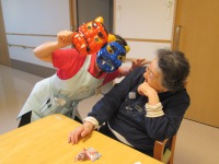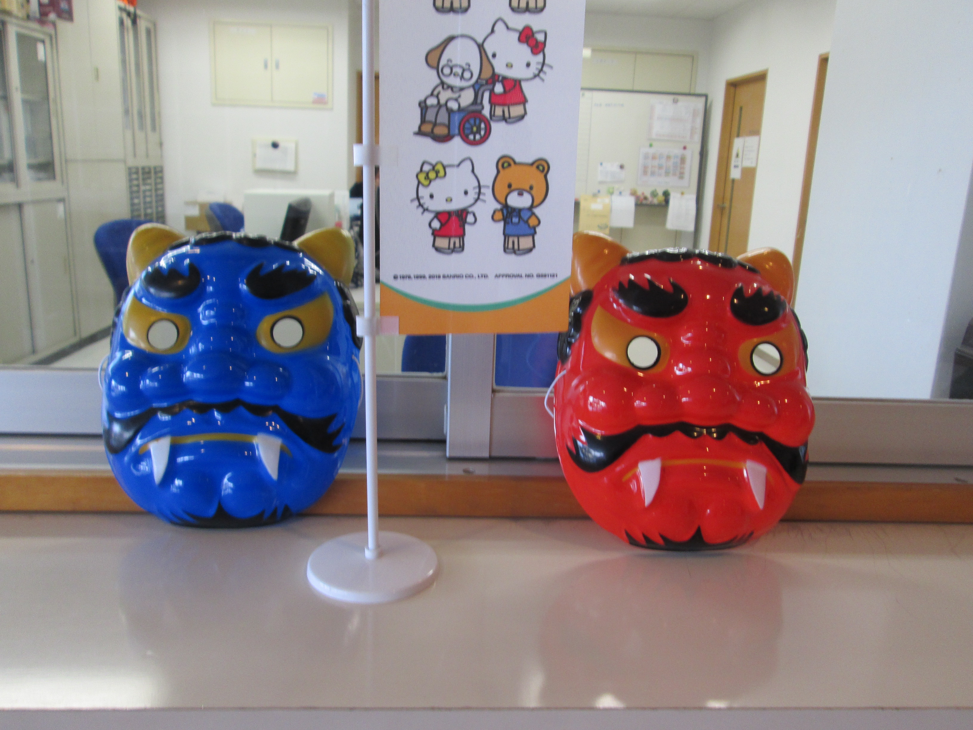 昨日の節分では、赤鬼青鬼が入居者様の居室に現れて楽しい時間??を過ごしたようです。
