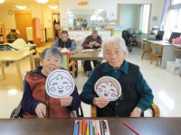 デイサービスでは、2月3日の節分に向けて鬼やおかめのお面づくりを行いました。