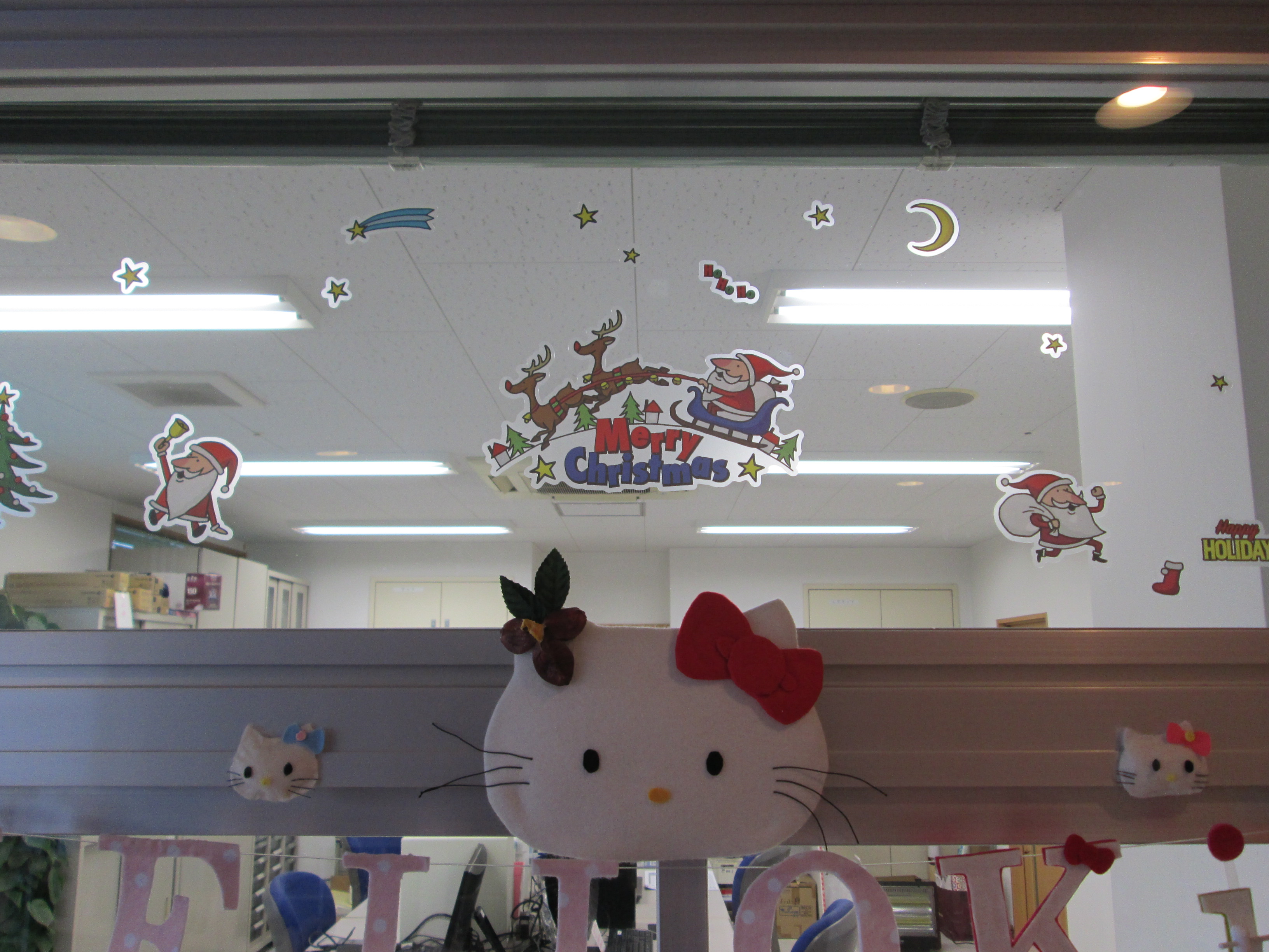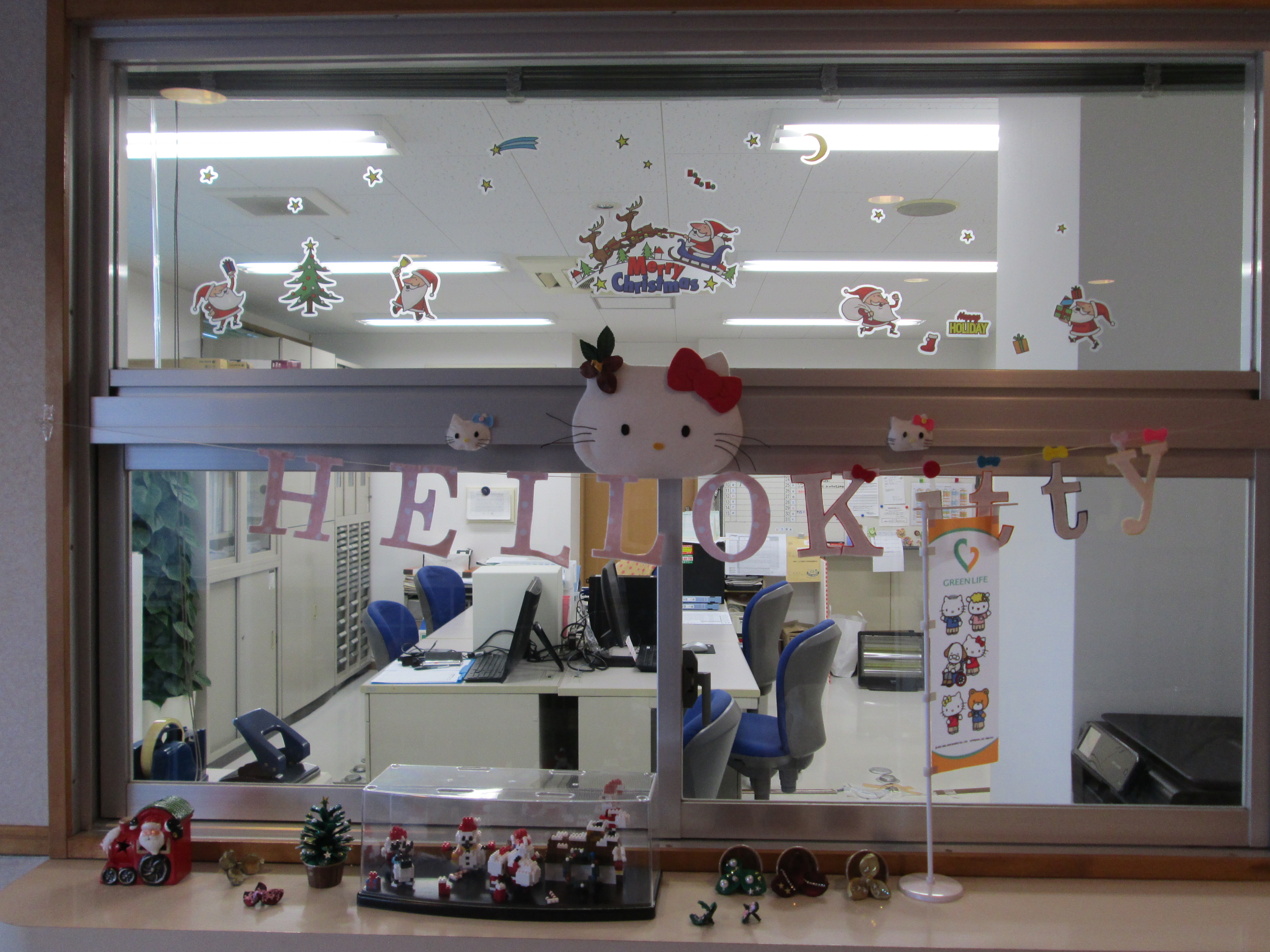 事務所の入口を彩る職員手作りの装飾品たちも見納めとなります。