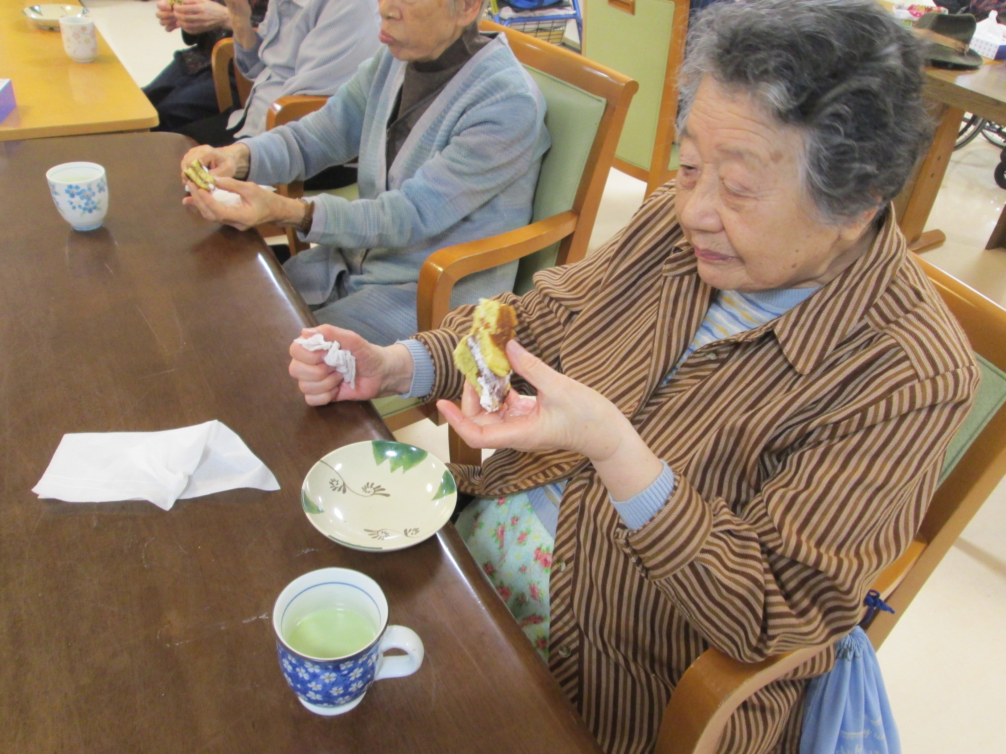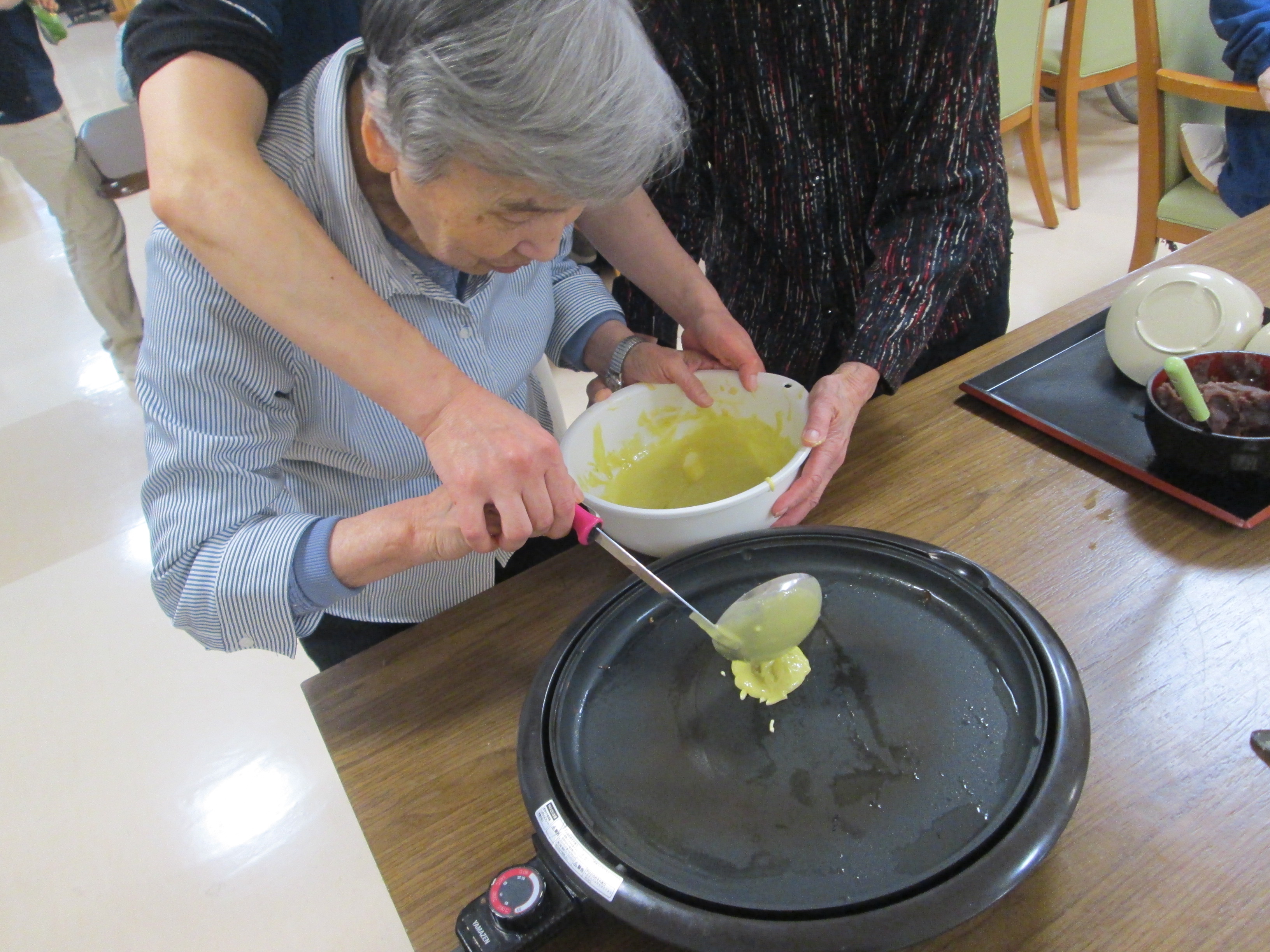 今日のデイサービスの料理教室では、甘い甘いどら焼きを作りました!!