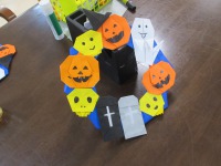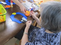 いよいよ9月も後半となり、デイサービスではハロウィンのリース作りが行われていました。
