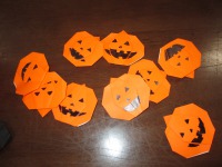 デイサービスの利用者様も折り紙でたくさんかぼちゃを作成していました。