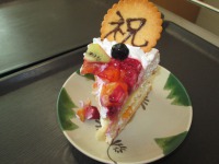厨房の職員が丁寧に作ってくれた、フルーツたっぷりの美味しそうなケーキでお祝いしていました。