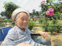 お天気に恵まれ(暑いとも言います)、デイサービスの方々は引き続きばら園の見学に行っています。