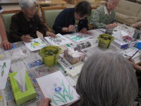 デイサービスの水彩画教室では、五月らしい爽やかな作品が沢山仕上がっていました。