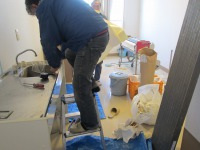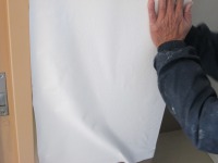 お二人でみるみる内に古い壁紙をはがし、新しい壁紙を貼って行きます。