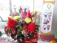 今月届いたフラワーアレンジメントには、真っ赤な可愛らしい姫りんごが入っていました。