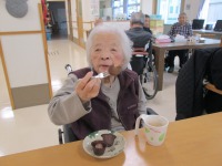 今日のデイサービスの手作りおやつは、蒸したじゃが芋にチョコレートをコーティングした【じゃが芋のトリュフ】でした。