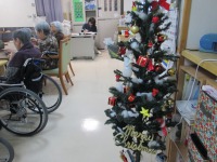 デイルームも、事務所も、玄関もクリスマス色に変わってきました。