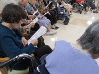 みなさん一生懸命歌詞カードに目をやり音楽に合わせて口ずさんでいました。