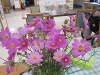 今デイルームにはコスモスが咲き乱れています。