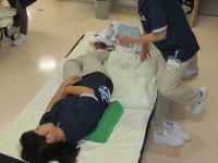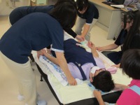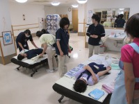 また、今月の研修は本社の研修を受講した職員が講師を務め、『介護技術・介護予防』について学びました。