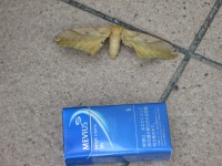 花壇の横で大きな大きな蛾が羽を休めていました。