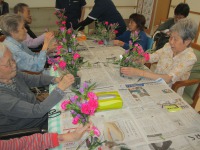 今日はデイサービスで、フラワーアレンジメント教室を行っていました。