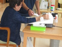 今回始めて、デモンストレーションとして【ぐんま足ケア訪問サービス】の田中さんにお越しいただき、フットケアを行っています。