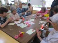 紙を小さく切ったり、台紙に貼り付けたりと細かい作業をみなさん熱心に行っていました。
