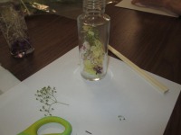オイルを入れた瓶に、ドライフラワーやプリザーブドフラワーを詰めて行きます。