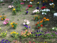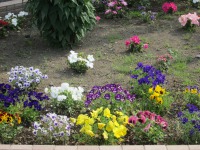 4月22日のフリーマーケット後に植えた、パンジーやペチュニアが成長中です。