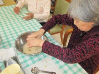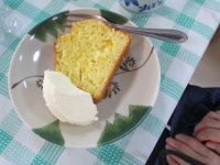 今日のデイサービスのおやつは、大きな夏みかんを使った手作りのパウンドケーキでした。