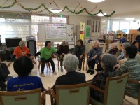 今日はデイサービスに『明寿大学同窓会・ラフターヨガクラブ』の方にお越しいただき笑いヨガ教室を開催しました。