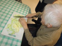 今週はデイサービスのおやつでいつも大好評のお好み焼きを作っていました。