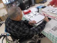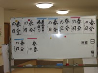 お彼岸に入り、デイサービスの書道教室では『春分の日』と言う文字を書いていました。