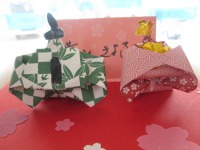 昨日の壁面の飾りとはまたひと味違い、お内裏さまとお雛様が仲良く並んでいます。