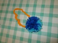 今日のデイサービスでは、毛糸を使ってボンボンのキーホルダーを作っていました。