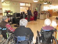 お雛様を背にして、歌に踊りを披露してくれ楽しい時間を過ごすことができました。