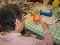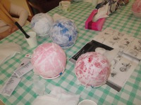 ふうせんに、ティッシュペーパーを貼り付けておしゃれなシェード作りをました!!