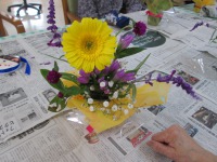 今日はデイサービスでフラワーアレンジメント教室を開催しました。