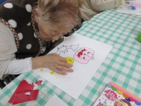 やはりハロウィン!! かぼちゃのイラストに切った折り紙を貼り付けていきました。