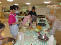 敬老の日のイベントとして、みんなで『わいわいがやがや』お好み焼きを作りました!!