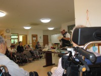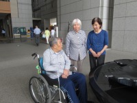デイサービスのご利用者様の目の前で、クルクルと生地を回すパフォーマンスを見せてもらい