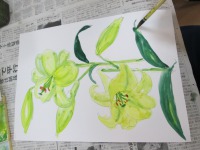 今週の水彩画教室は、百合の花が咲き乱れました。