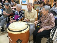 また、アンコールでは入居者様やデイサービスのご利用者様がバチを持ち、風神太鼓のみなさんとコラボしました!!!