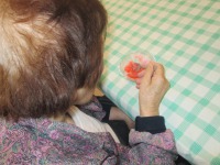 今日のデイサービスでは、冷たいかき氷を作りおやつにいただきました。