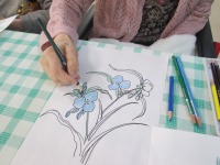 デイサービスでは色鉛筆を使ったぬり絵教室が開かれていました。