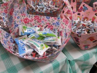 今日は、牛乳パックで作った小物入れにキャンディーを詰めていました!!